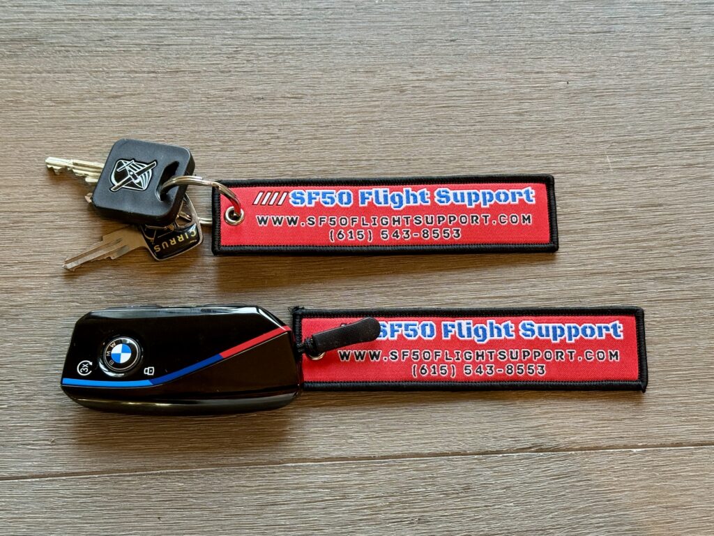 Available for online purchase, these durable keychain tags feature the SF50 Flight Support logo on one side and the iconic “Remove Before Flight” text on the reverse. A perfect accessory for pilots, aviation enthusiasts, and anyone who appreciates authentic aviation gear.