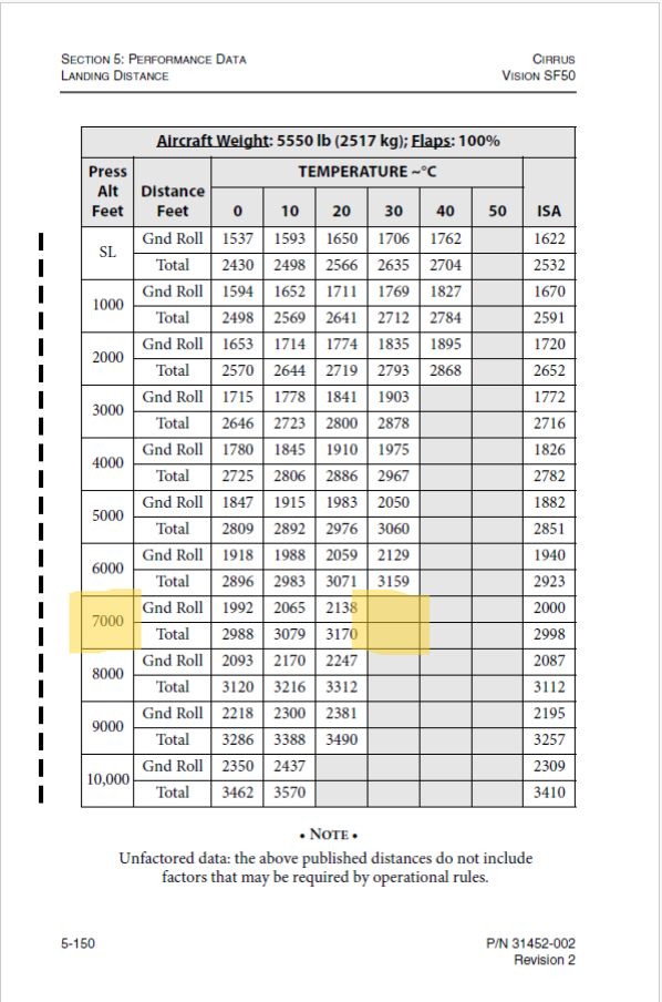 Vision Jet Landing Performance Calculations