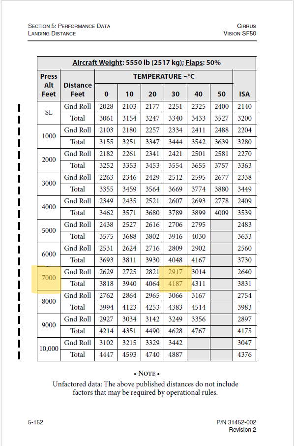 Takeoff performance is huge, but landing performance criteria is often overlooked. The following discussion highlights performance limitations of the SF50 and emphasis on planning for takeoff and landing distances. Personal minimums for runway lengths may not always be the only consideration, so we must be careful with landing configurations even with long runways at times.