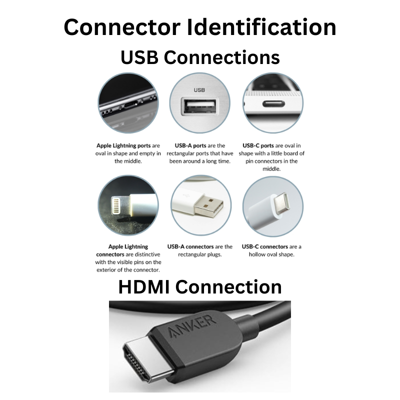 • Micro-USB, Lightning, or USB-C (for mobile devices and tablets)
