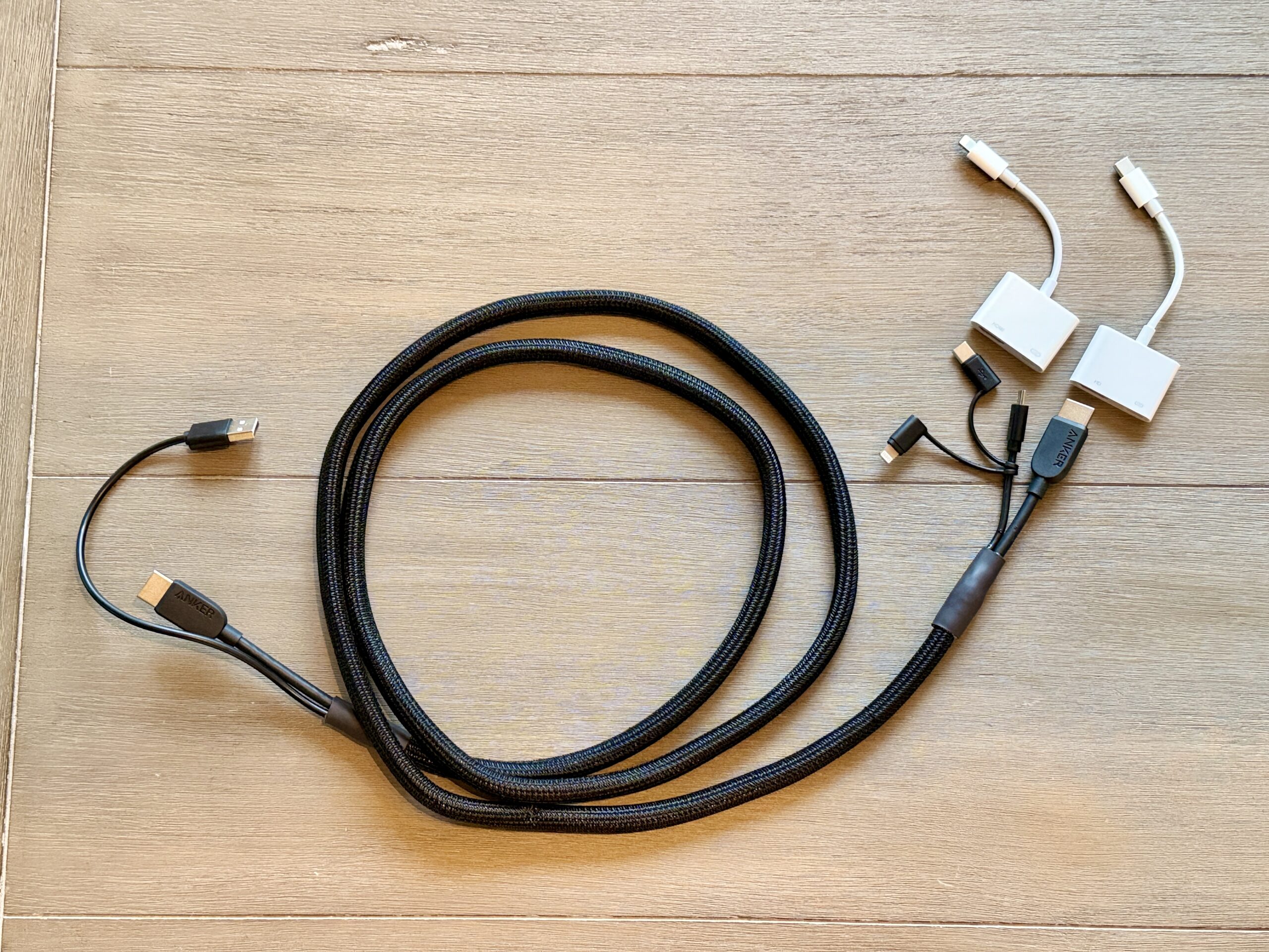 The kit supports devices with HDMI, Apple Lightning, and USB-C connections, covering iPhones, iPads, and Samsung mobile devices, as well as game consoles with HDMI connection, in one streamlined package. Each cable assembly and adapter is designed for broad device compatibility, organized cable management, efficient storage, and sufficient length for comfortable in-flight use.